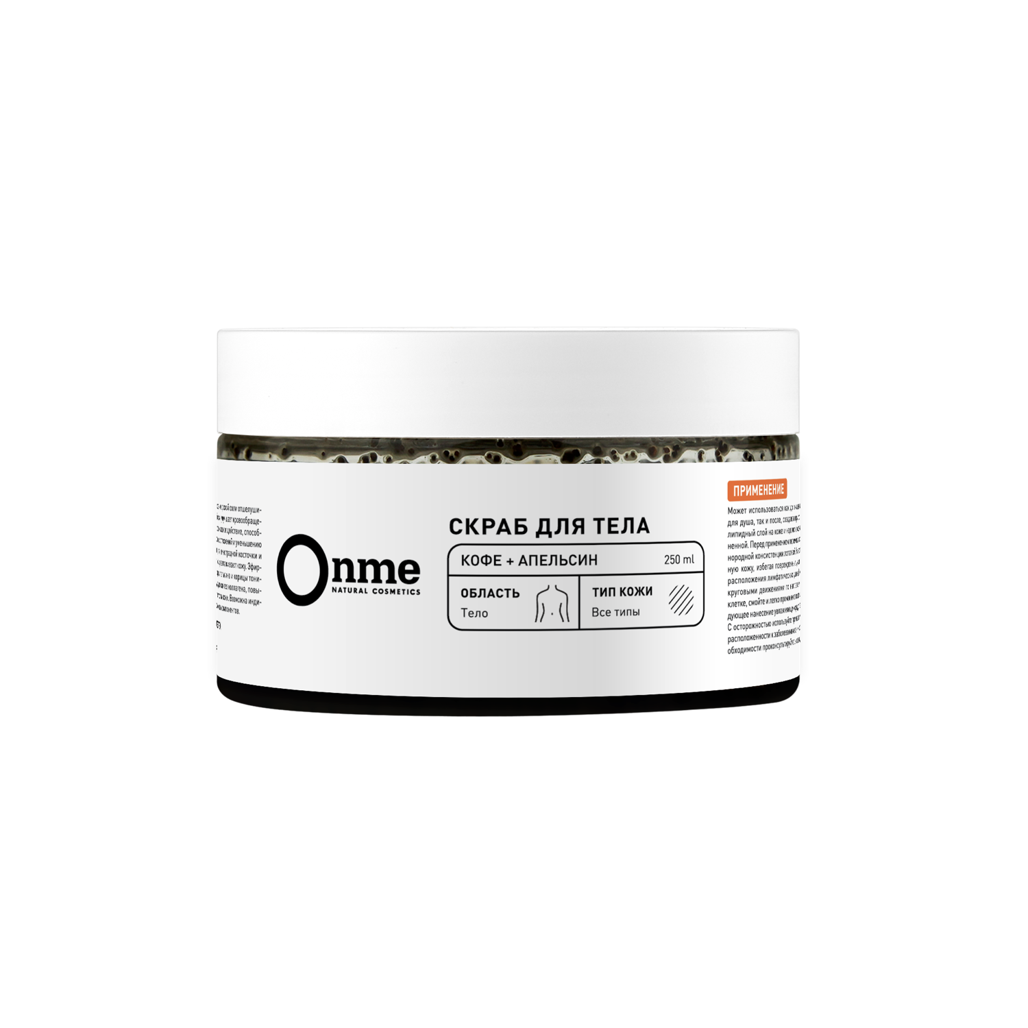 Coffea Arabica Seed Powder (кофе молотый), Maris Salt (морская соль), Prunus Amygdalus Dulcis Oil (миндальное масло), Vitis Vinifera Seed Oil (масло виноградной косточки), Cocos Nucifera Oil (кокосовое масло), Piper Nigrum Essential Oil (эфирное масло черного перца), Citrus Sinensis Essential Oil (эфирное масло апельсина), Cinnamomum Essential Oil (эфирное масло корицы).